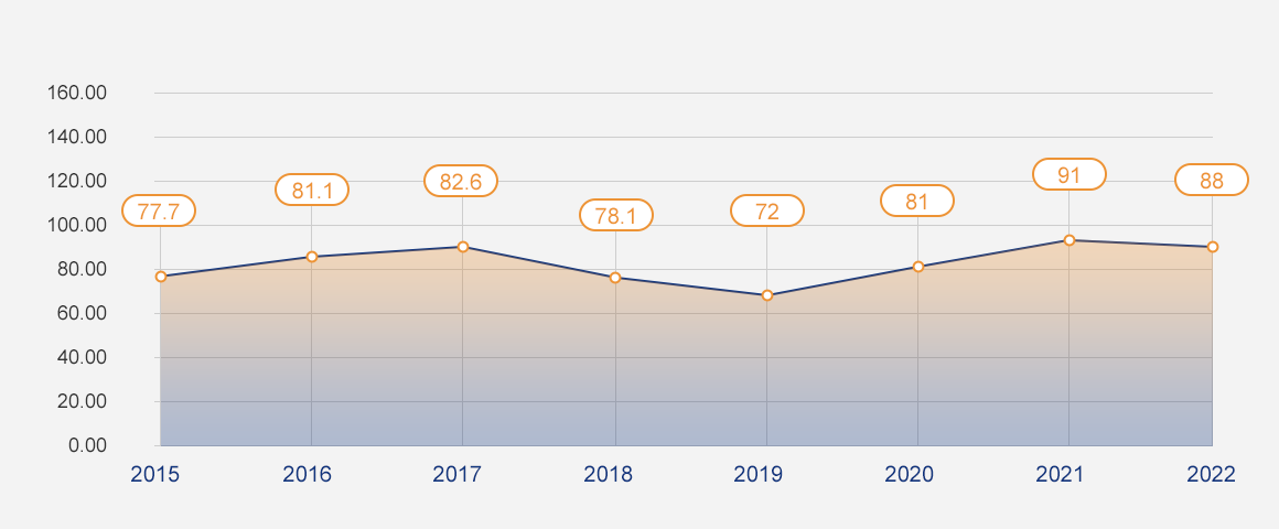 中芯國際自來水消耗強度 (單位:公升/8'晶圓當量光罩)