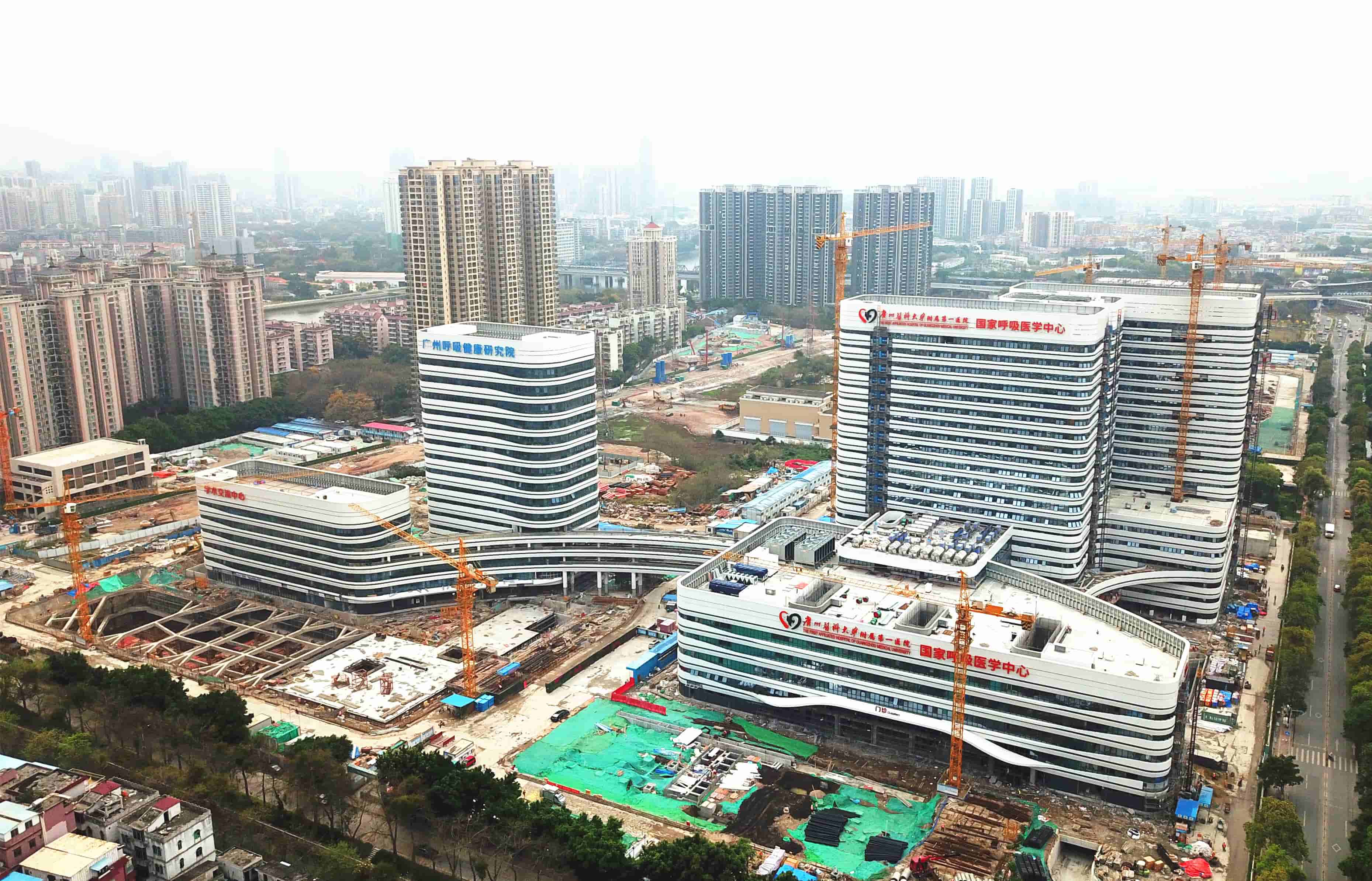 广州呼吸中心项目位于荔湾区大坦沙岛桥中路,建筑面积约21万平方米,拥有近1200张床位,建设内容包括东地块的国家重点实验室、学术科研楼和学术交流中心,西地块的门诊、医技、住院综合楼。2021年2月21日(大年初十),项目部统筹做好疫情防控和复工复产,加大项目建设推进力度,迅速进入决战阶段,确保在2021年6月30日前完成竣工交付并投入使用。