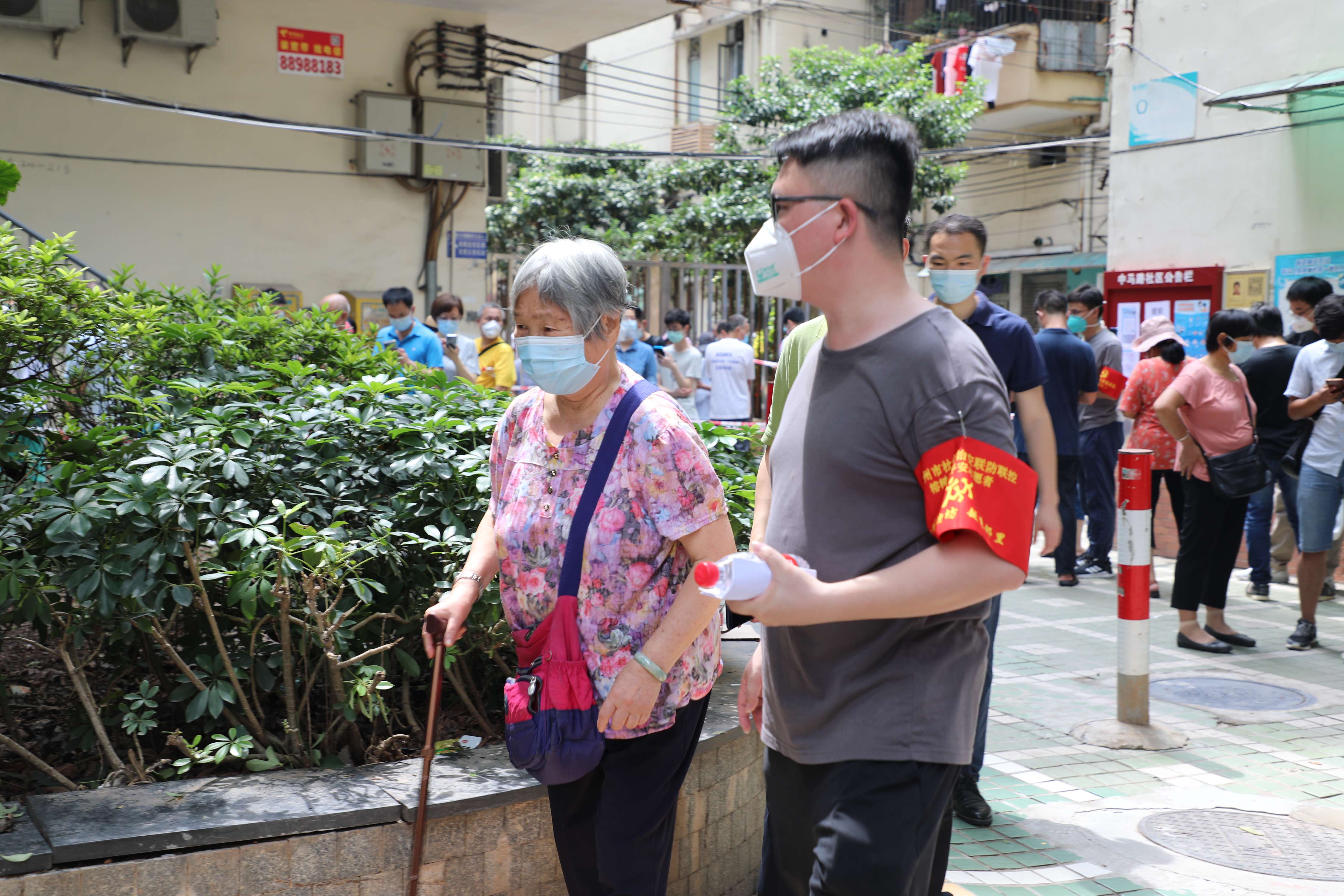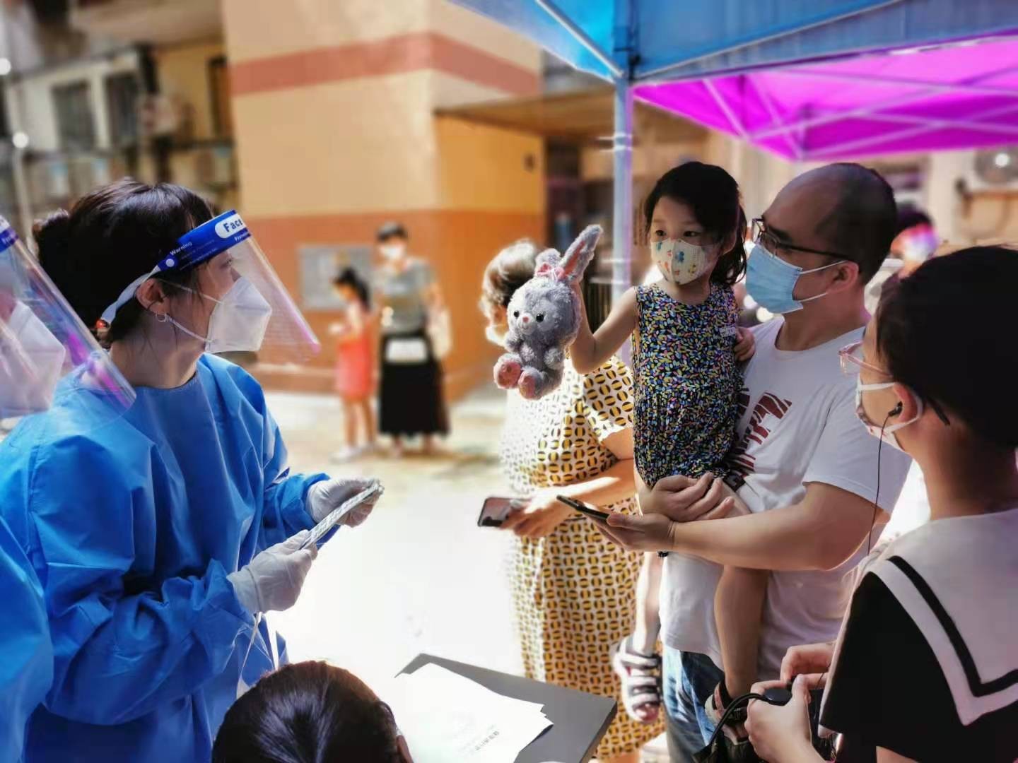 为了做好小朋友的核酸采样工作,医护人员和志愿者们用幽默风趣的语言缓解他们的焦虑;为了照顾行动不便的老年人,更是开放了绿色通道,让他们能更快地接受检测,防止因炎热天气造成身体不适。这一群可爱的志愿者,总是把最苦最累的事情全部包揽,把所有的温暖都留给了市民群众。