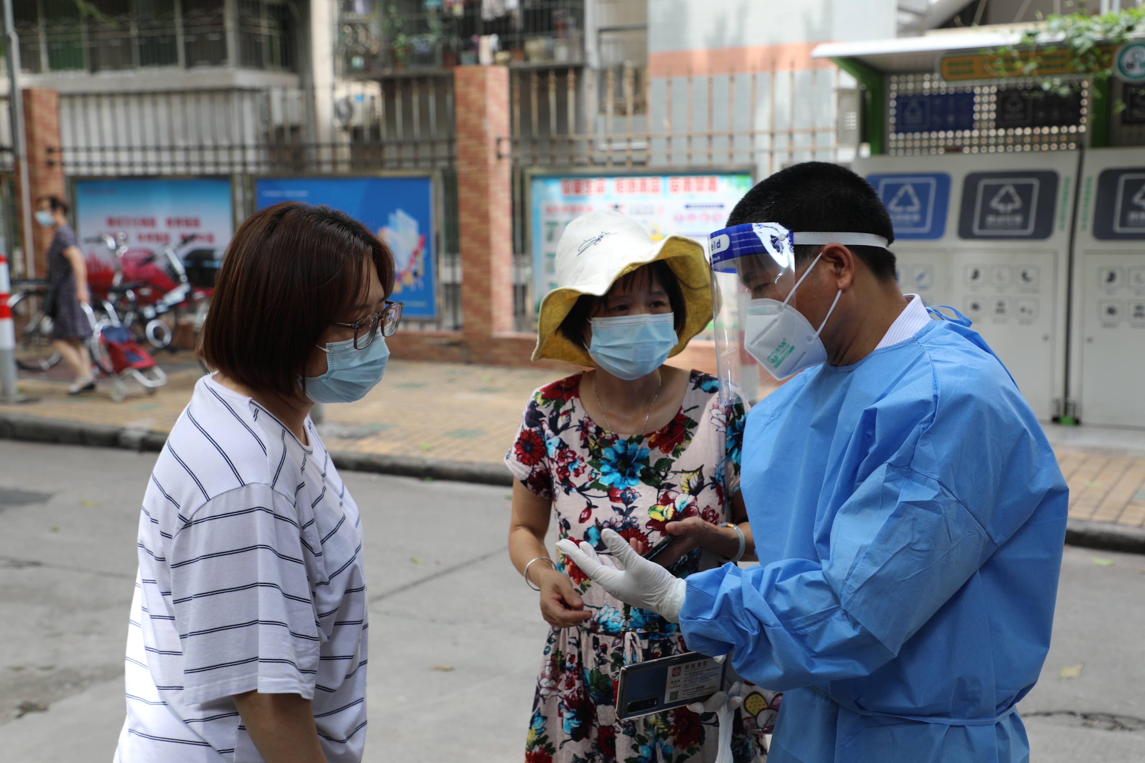 五个小时内,职工医院的核酸检测医护人员,一次次地登记信息、弓腰、探喉、采样,上千次的步骤重复,却没有一句怨言。半天下来,汗水湿透衣裳、额头印出勒痕,他们也毫不在意。而在后方支援的志愿者们,无论是后勤物资的运送,还是居民检测的引导,都认真负责,做到耐心细致。