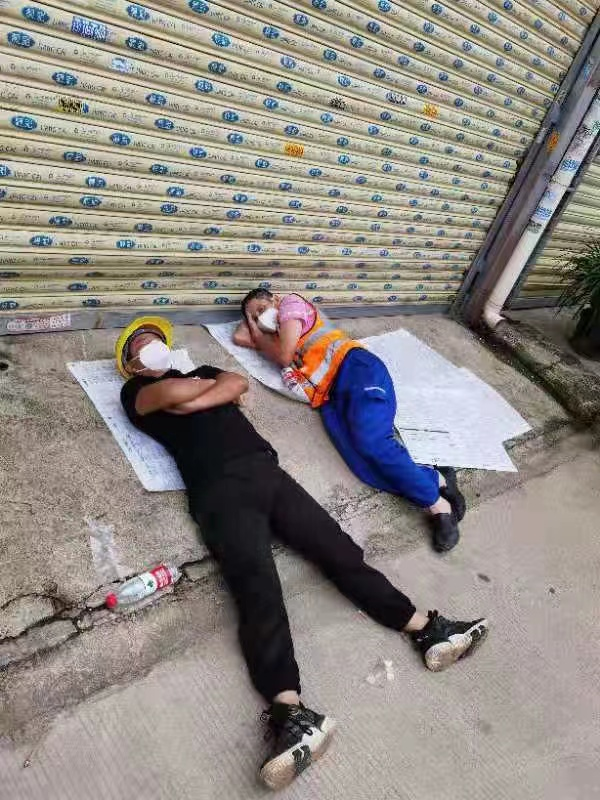 ▲施工人员就地休息