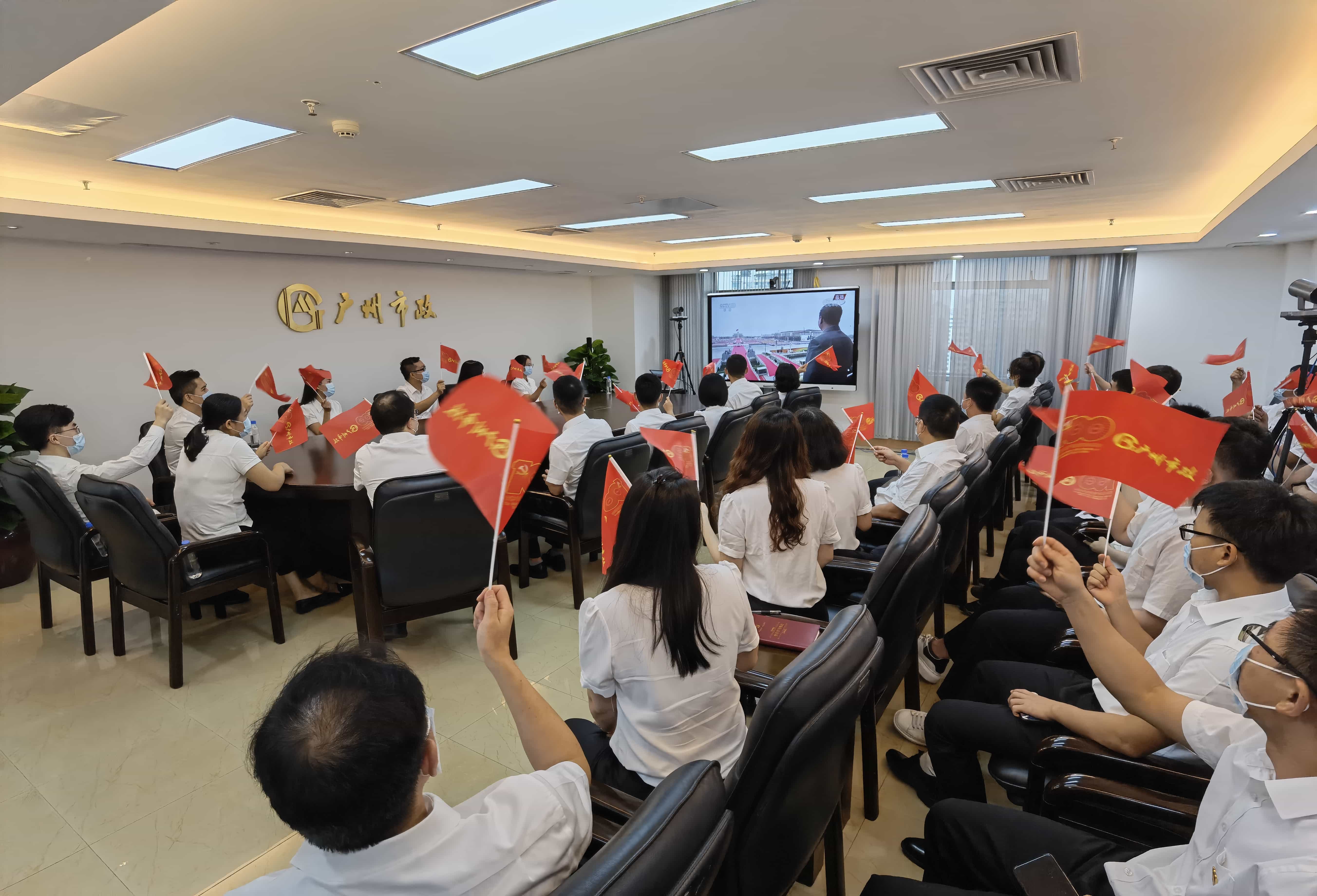 ▲机安公司广州市应急指挥中心项目部收看大会直播