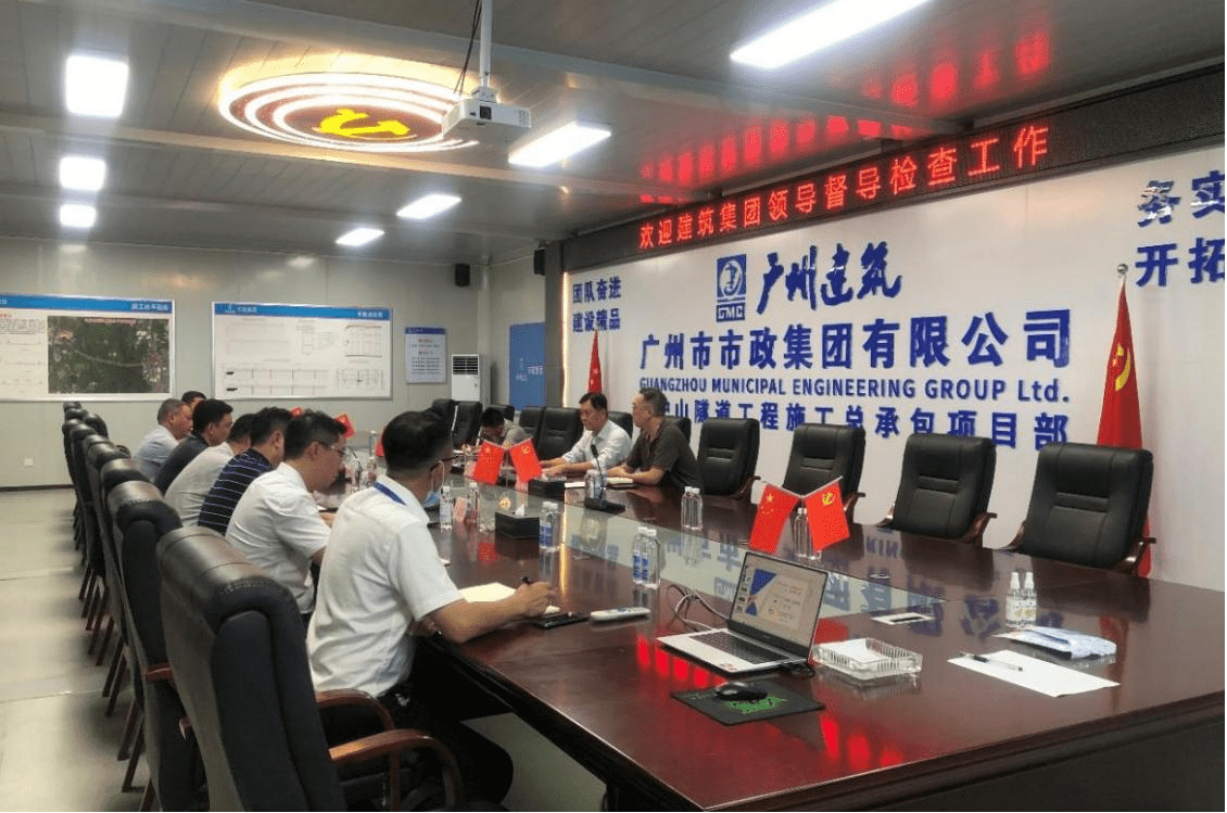 近日,广州建筑总经理张宇江、总经理助理方维一行到火炉山隧道施工总承包项目开展督导检查。市政集团总经理郭云飞,党委副书记李兴虎、副总经理段木子,市政总承包分公司党委书记、总经理洪汉江等陪同检查。