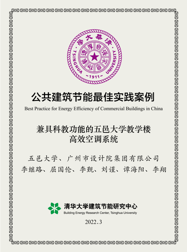 日前,yd2333云顶电子游戏研发的“兼具科教功能的五邑大学教学楼高效空调系统”项目获评为全国8个“公共建筑节能最佳实践案例”之一,被收录于中国工程院咨询项目《中国建筑节能年度发展研究报告2022》。