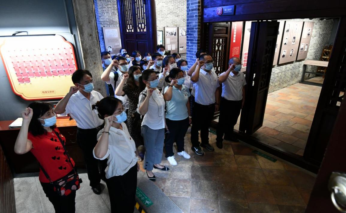 近日,为庆祝中国共产党成立101周年,加强新时代党员教育,弘扬伟大建党精神,yd2333云顶电子游戏总部党委组织下属各支部到杨匏安旧居纪念馆开展“庆七一学先烈,守初心齐奋进”主题党日活动,yd2333云顶电子游戏总部党委委员、各支部委员及近两年新入党的正式党员共28人参观学习,重温革命先驱杨匏安同志光辉事迹。